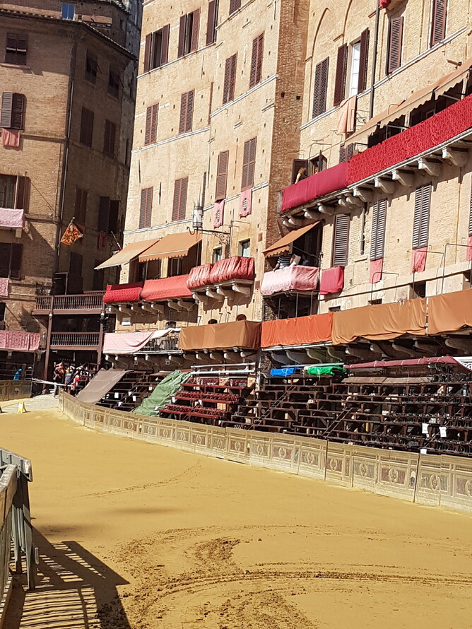 Then it is put in this place opposite the finish line, until the winning contrade claim it after the race.