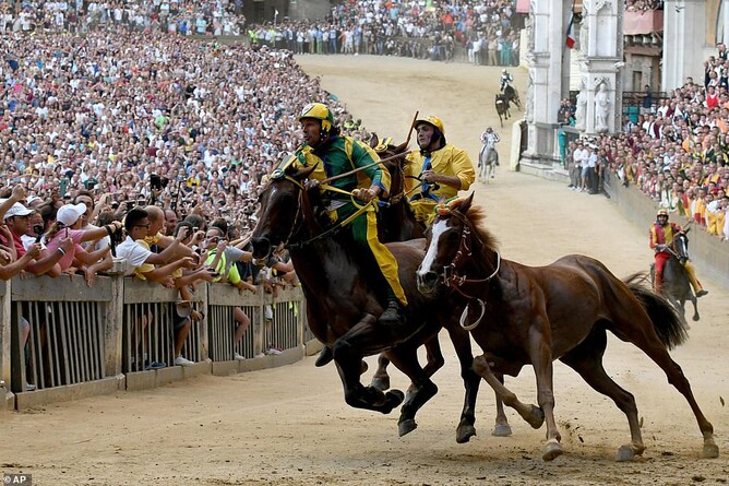 I think that horse Remorex is legendary. It won in July with outits rider and it has won again. Caterpillar's jockey tried to whip it at the finish with his nerbo (whip), He thought he had won and then Remorex snuck up on the outside. This horse is intelligent and knows what is going on. Remorex has won the Palio three times, twice riderless.