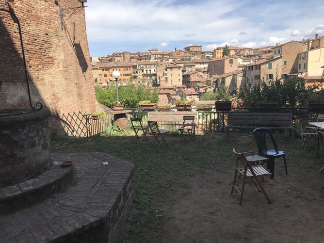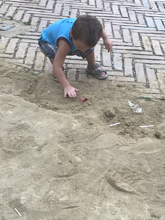 Then we wander to Piazza del Campo for something to eat. I spot this boy playing on the track (a ring of soil was placed on the outer perimeter of the Campo to create the race track.) I am guessing it will be removed in the next day or so.