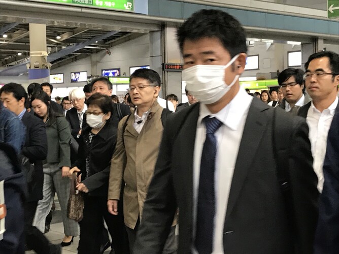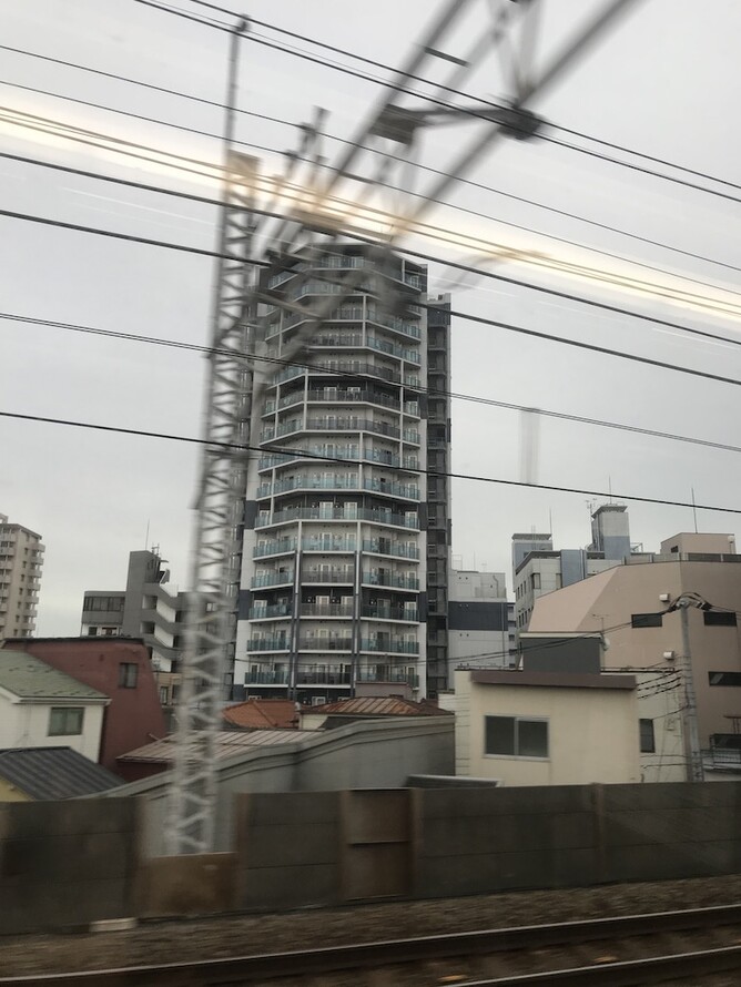 We flew a direct Air NZ flight which left NZ at 12.05 am on 17th Oct and landed in Tokyo at 6am the same day (a 10 hour flight), NZ is 4 hours ahead. We met John Chisholm in the immigration queue at the airport. It is our first time in Japan. We took the train from the airport to Shinagawa Station. I thought the train might go faster - it took about 90mins. Here is a photo from the train - a high rise, and wires. It kind of looked like Lego land Japanese style.