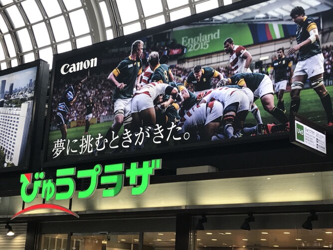 Rugby was on a billboard in Shinagawa station. Could one of these teams reach the final?
