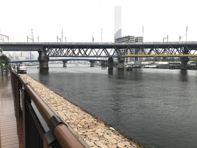 Behind the park was the Minato river. This was just after the Hagibis typhoon. A bit of rubbish but not too much.