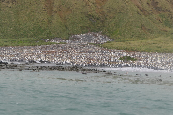 There are maybe 250,000 King penguins here. They are counted using a drone photograph (but not individually).