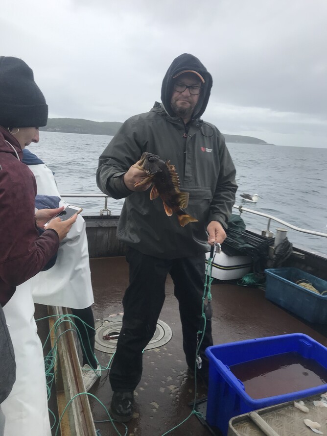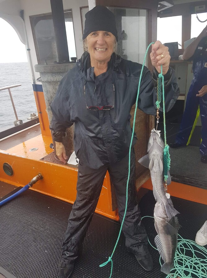 Straight away he gets a blue cod.