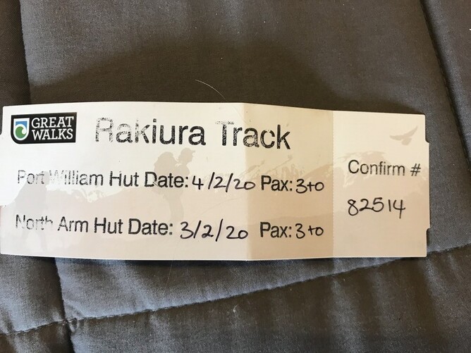 These are the tickets for our three day walk. We have camping ones as well for four of the youngies. (Anna is in the huts with us.) Cost is $24 per night per adult in each hut, camping $15 per night per person.