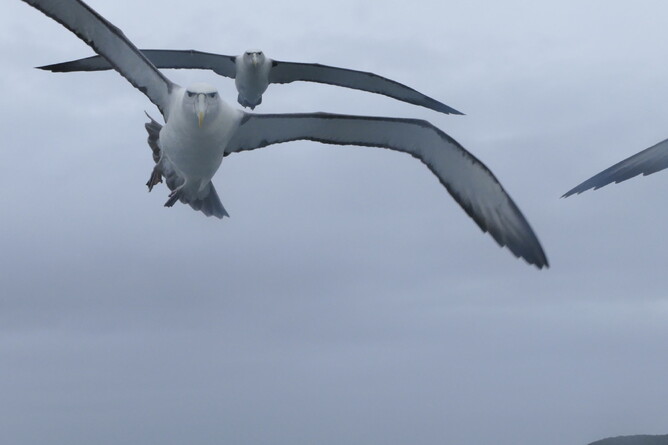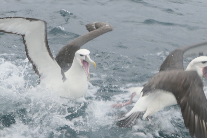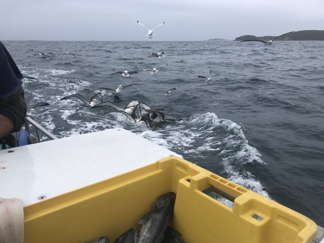 I filmed the albatross who followed the boat so closely it was unbelievable. They were there for the rest of the fish Ant threw to them.