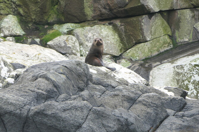 We head to Herekopare Island, about a 45min trip, and look for seals. We find one.