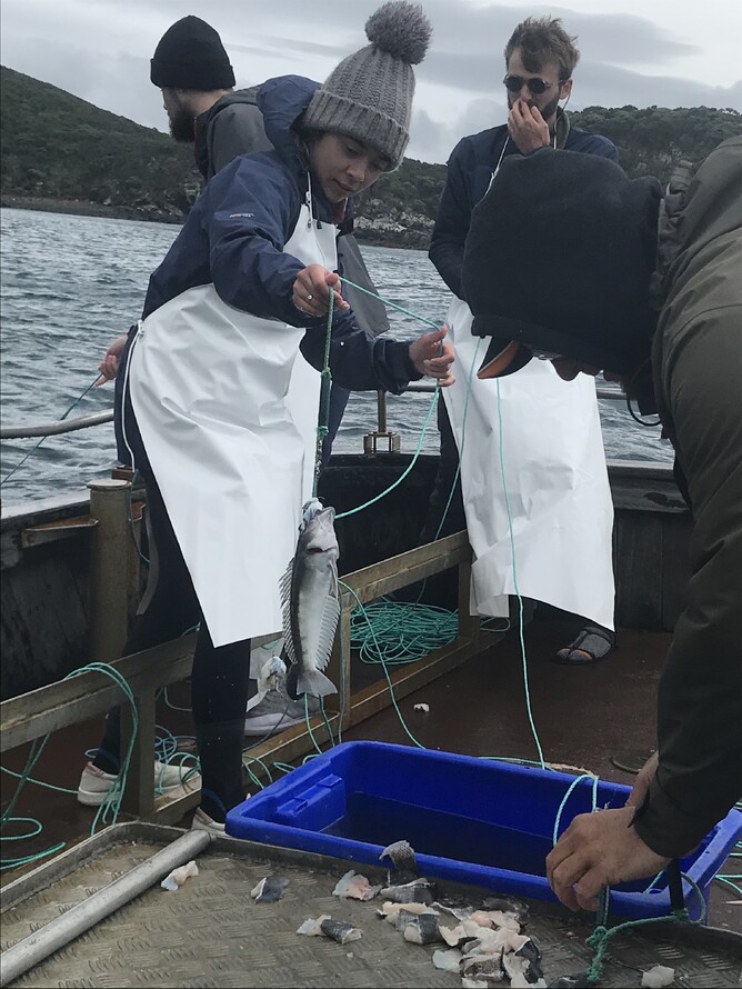Ant filleted the fish, while Craig drove the boat.