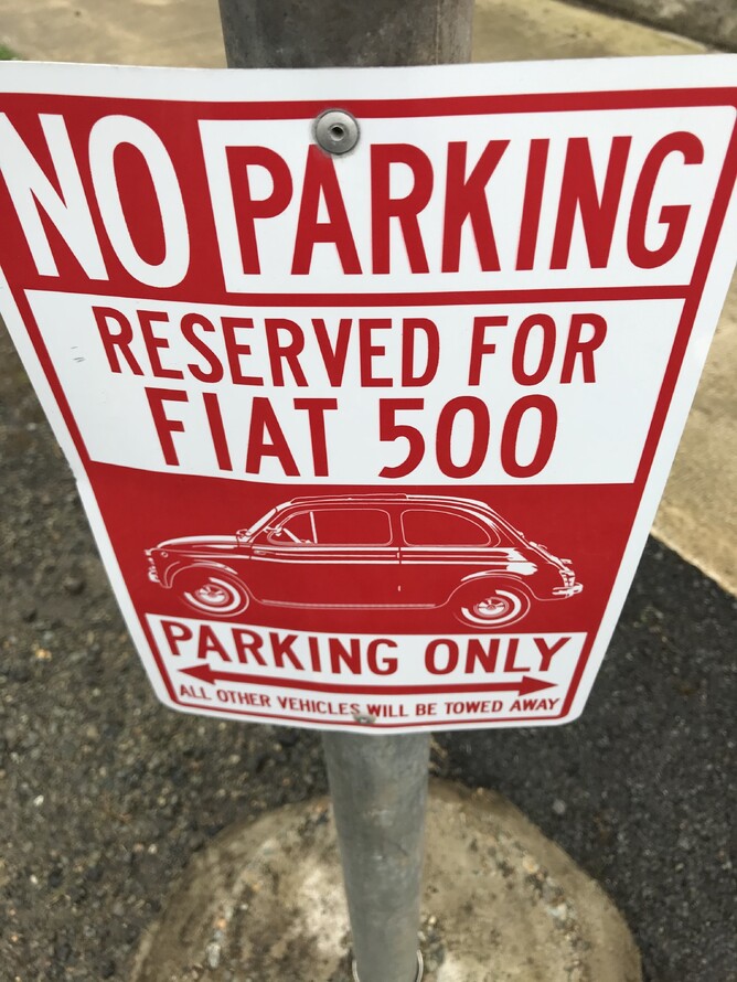 After breakfast I pick up the tickets for the Rakiura Track walk from the visitor centre in Main St. Anna sees this sign along the way. I own a Fiat 500, one of the smallest cars on the road, and we are in remote Stewart Island where carparks are plentiful! So funny we all thought.