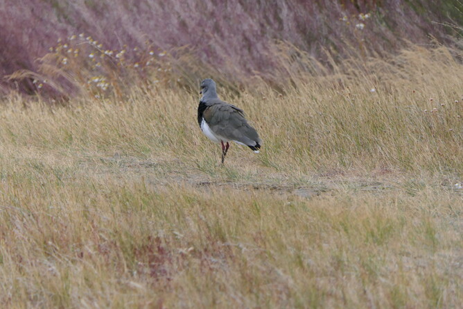 We walk around the wetland. It is super windy. It takes 45 minutes. This is what we see. We also walked it the next day and it was very still then. I have included photos from both walks. Some are not blue. You can see how windy it is from the grass in this shot.