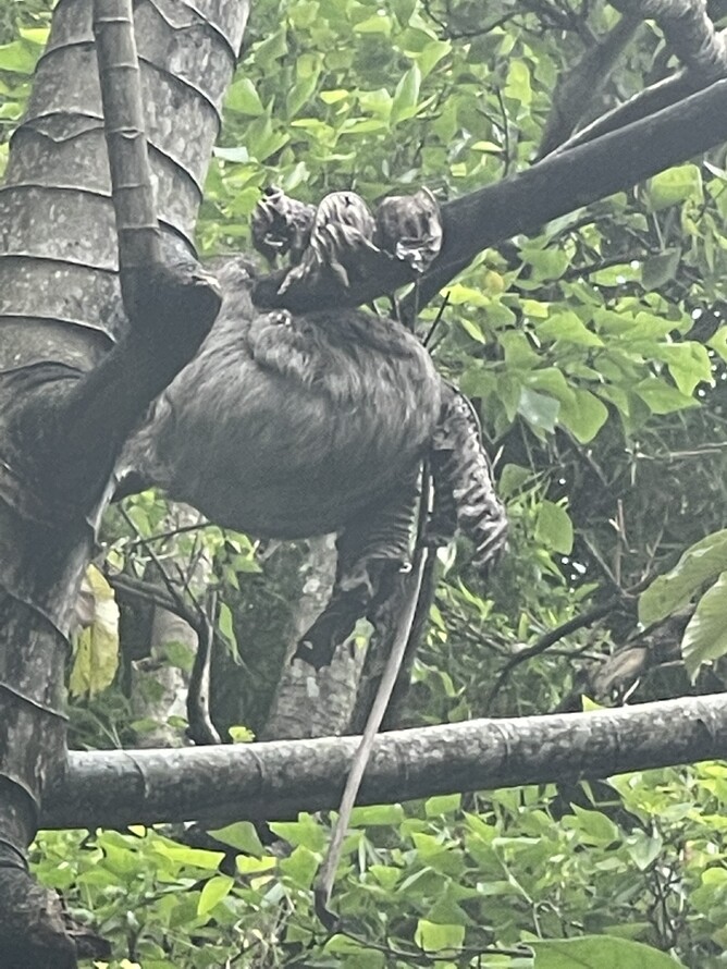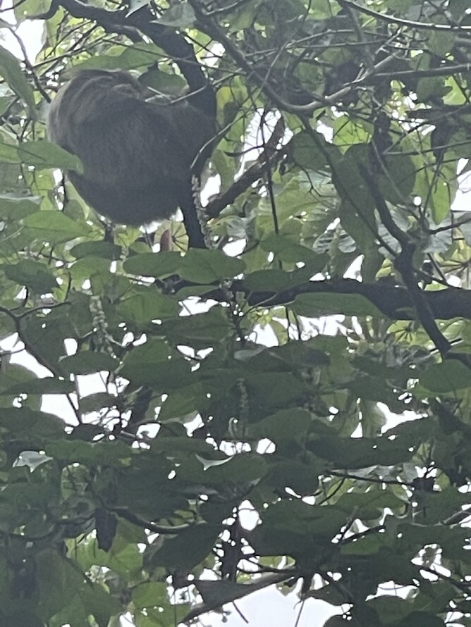 I kept on harping on about sloths, and I had read they were at the University of Costa Rica. I asked Alex whether that was on the tour? He said it wasn't, but he was going to the university after the tour as he was a student studying and he would take us. He said he could show us where the sloths were, as he is a guide in the summer doing walking tours of the grounds there too. So we all got a taxi there! I was getting excited ... and then Alex showed us one, and then another. I didn't expect to see them all curled up. They sleep for 20 hours of the day. More about sloths later. (A lot more, Ed.)