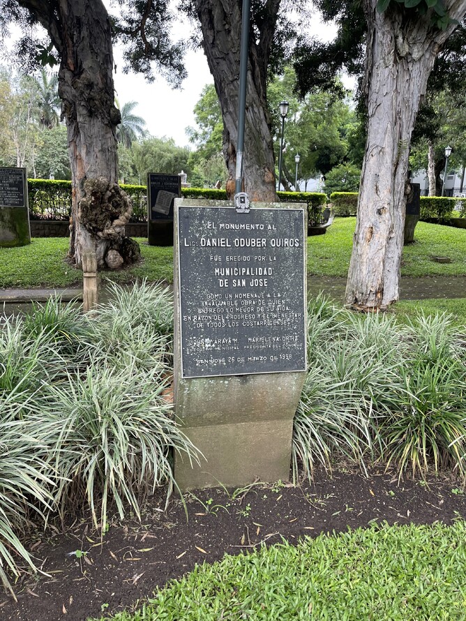 Daniel Odouber Quiros was President of Costa Rica 1974-78. He is particularly known for the creation of the National System for Conservation Areas, including the launch of the first of 13 national parks. The parks make up more than 20% of Costa Rica. He was a popular statesman who, according to his daughter, ruled with personal sacrifice in favor of all the social sectors of his time. I loved this. Also he was a keen basketball, poet and lawyer. Here is me with him.