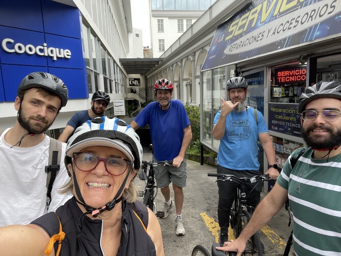 The next day, a bike tour around San Jose. We have discovered a bike ride gets you oriented around new cities, and is a fun way to have a first look. This was local guides, Alex and Jose(?), and Cory from Hawaii and us.