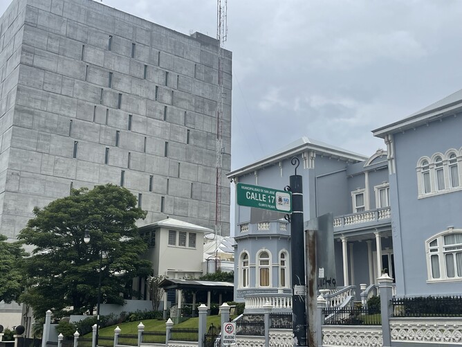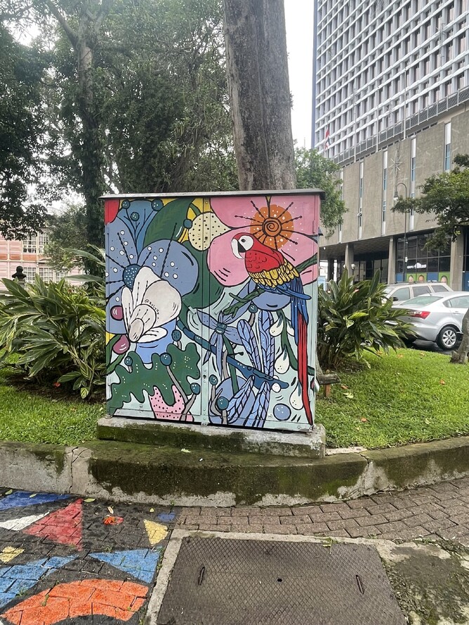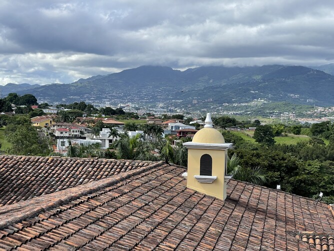 A bit more cycling. This building is the government building - the concrete high rise with few windows. It is controversial in Costa Rica and certainly is different for a government building.