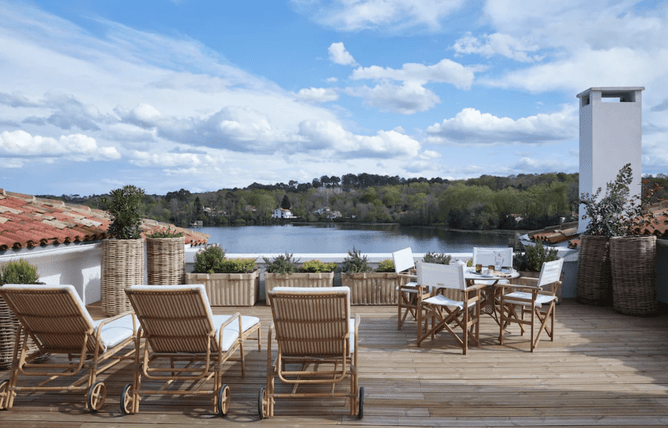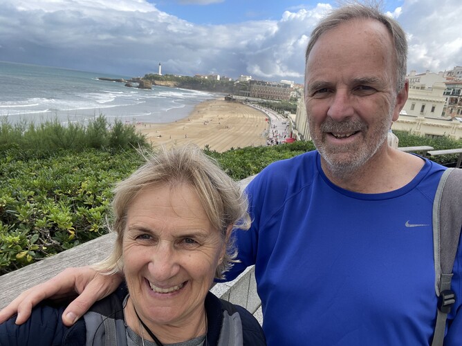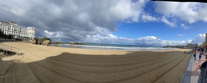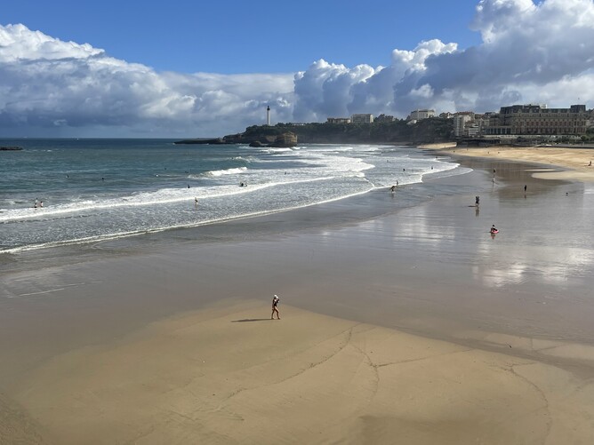 We leave our hotel early, and Bill goes to pick up our rental car. We have breakfast at the Novotel as it is pouring rain. We spend the morning catching up on calls and admin. Then we go for a drive in Biarritz and still wet. We check in to our stunning hotel called Brindos.