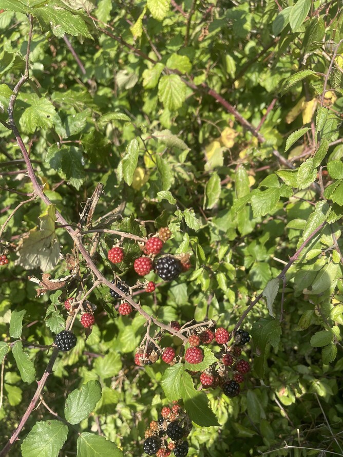 We pass berries and farmland. I am always surprised England has public walkways that feel as if you are walking on private land. We saw what looks to me like wild blueberries - they are called bilberries.