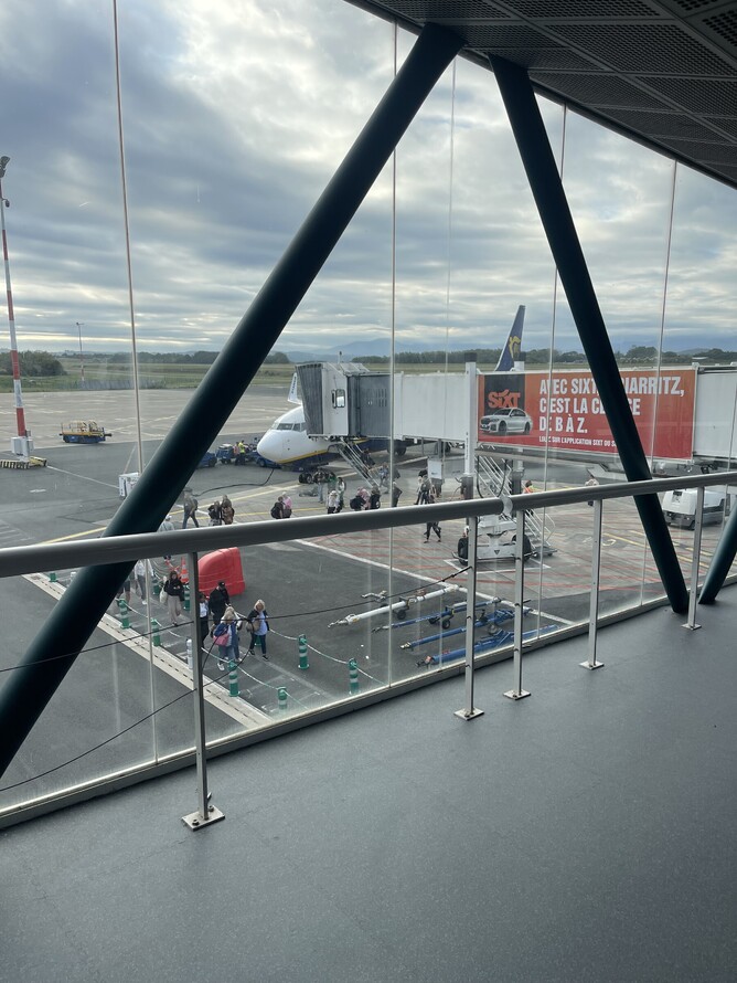 I am flying Ryanair from Biarritz to Stansted, London. First stop is to catch up with Freddie and Simon who live 10mins from the airport. I am a bit nervous as usually Bill organises everything to do with our trips - I'm the blog and fun element. Crikey, I have to be responsible and look at everything. After getting through security I head to the gate. Ryanair is like a bus. Everyone is piling off the flight from London. We are waiting to pile on.