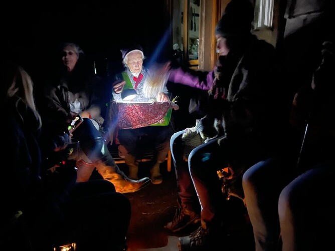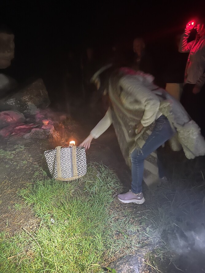 After dinner, we go and look for the Druid Temple to give our clearings for the weekend and our lives. There is no moon and a new moon will rise the next day. Mémé and Sue lead this. Out with the old and in with the new. A candle is lit, Sue and Mémé invite us all to let go of something if we want to and to speak it out loud.