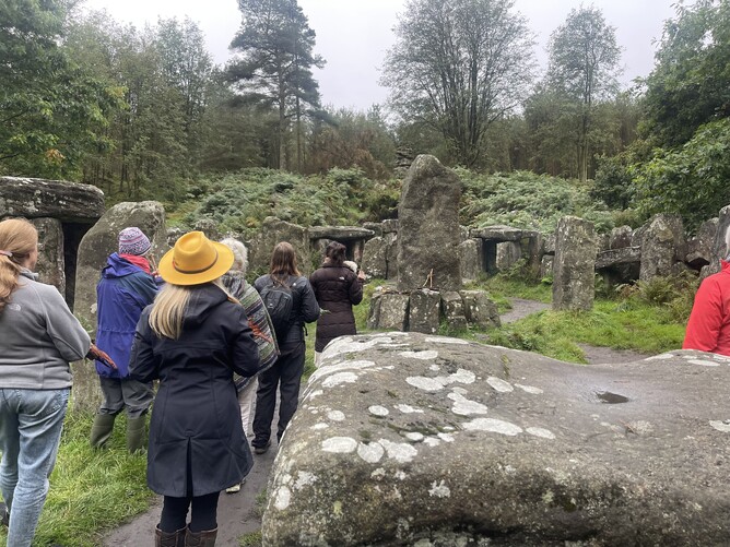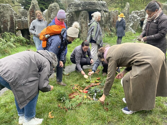 We all head to the Druid Temple at about 5.oo pm for the next sister-led activity. Catherine is leading the session. She starts by acknowledging nature. She invites us to pick up something natural on the way to acknowledge the earth together and the space we are in. We see a few visitors on the way. I am sure they think we are a bit weird. The Druid temple is weird. It is a folly and must have had some use.
