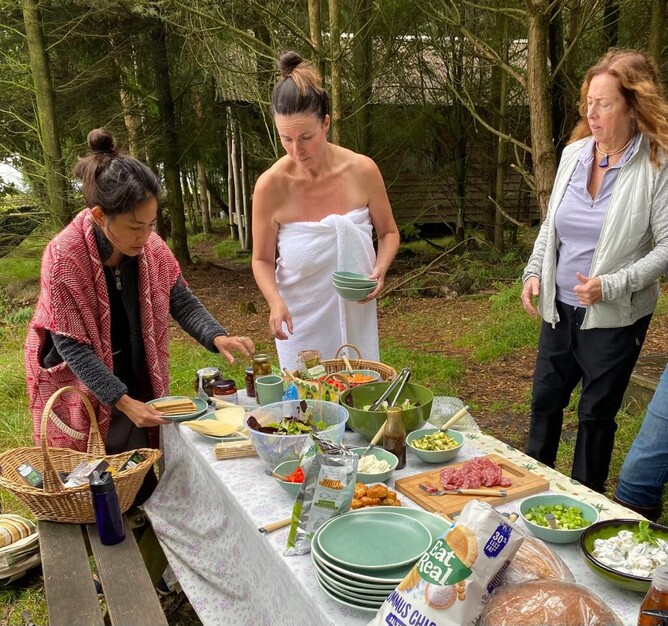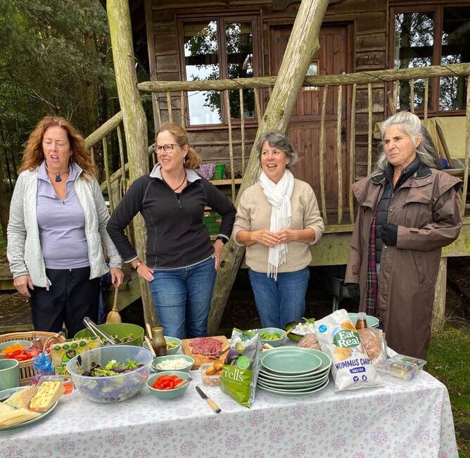 Then we headed off for a picnic lunch by the tree huts. Some went for another spa. Some relaxed. So much yummy food. Méme, Jo and Aileen.