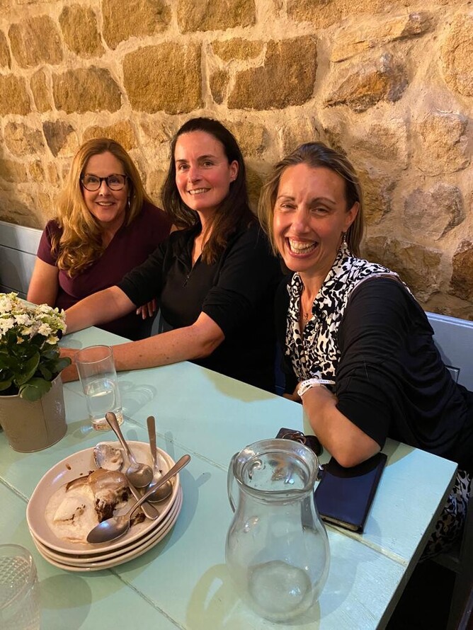 Back to the cafe for dinner. Kath and Sue, Catherine and Liz.
