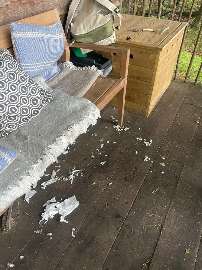 We are all packing up now. Rather than take leftover food out of the picnic bag that Freddie gave me, I leave it on the deck. Something less to think about I think. Wrong!