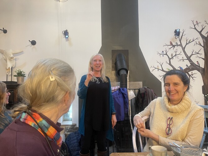 I have a great night's sleep. I am on the second bunk along with Jane. No-one snores. I trust I didn't. The next morning, after breakfast I am up with my "play" workshop. It is cold and we rug up. Here it is in action. The idea was to investigate what is meant by "play' in conversations, how it could make a difference, then where you do 'play ' and where do you not.