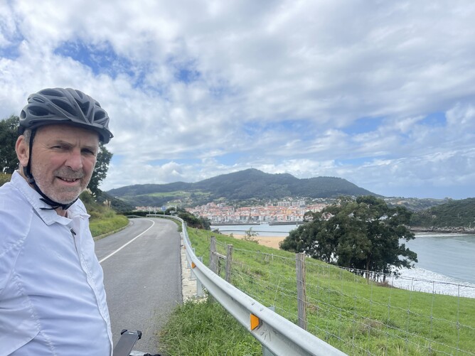 We climb into the hills. Bill leads on the straight. I lead up the hills. We didn't stop too much as we were trying to beat the rain. The coastline is stunning.