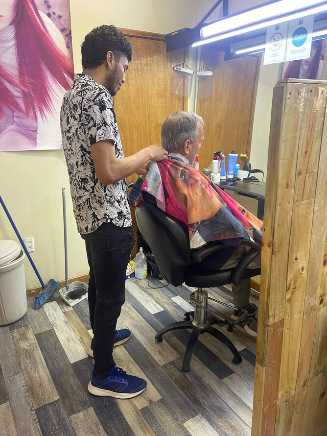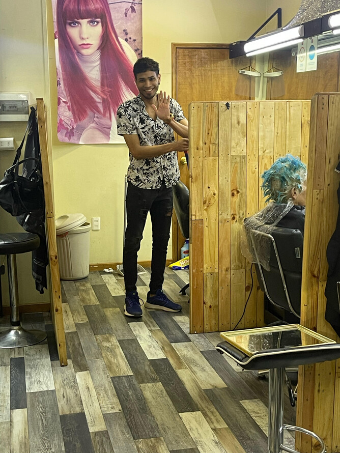 I notice there is a lady having her hair dyed blue next door to Bill. I take the photo. Bill’s hairdresser thought I was taking his picture. He was happy I was. I wonder if my sister Jojo might have her hair dyed blue. She wears blue every day. She has blue fingernails and toenails. This is all because her daughter Catherine is the National Party candidate for the TukiTuki electorate. I sent my sister the photo. She replied she definitely was not going to be dying her hair! How committed is she I thought?