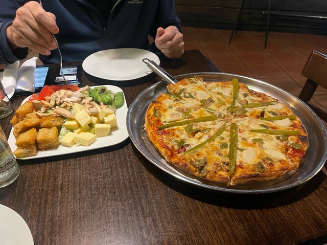 We go and have lunch in a restaurant. It is not that great. We order too much and take some pizza back to our room. We might eat it tomorrow. We both catch up on admin.