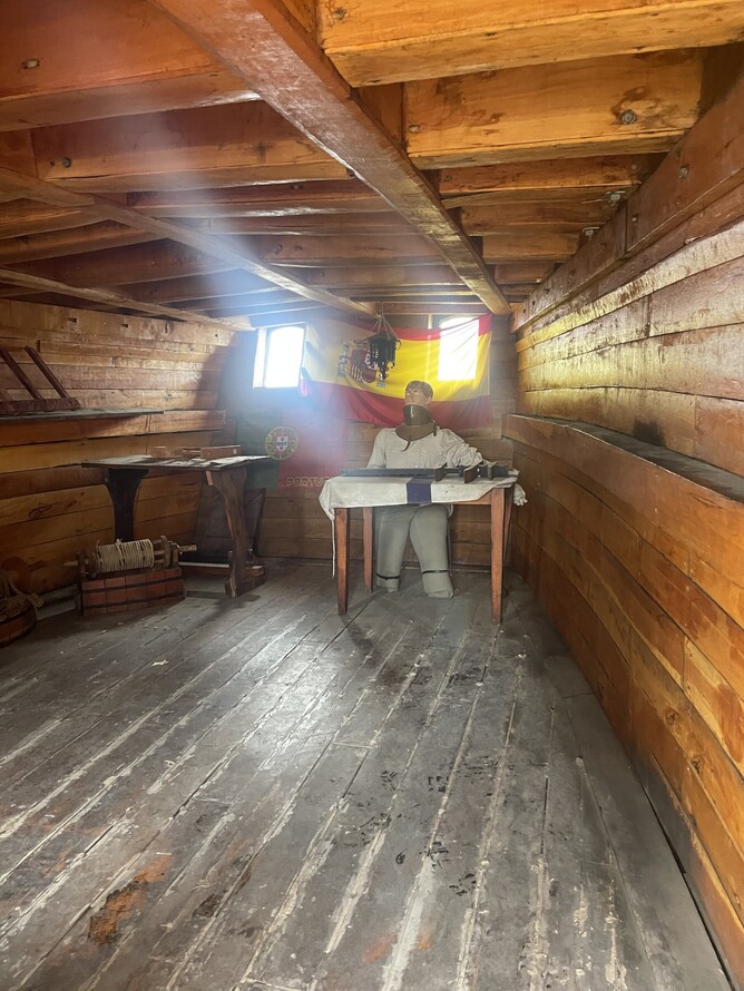 The first replica boat we looked at was the Nao Victoria. It was the protagonist of the first global circumnavigation between 1519 and 1522. The ship came from Ondarroa (Biscay) and was the only one of the five involved in the expedition to complete it.