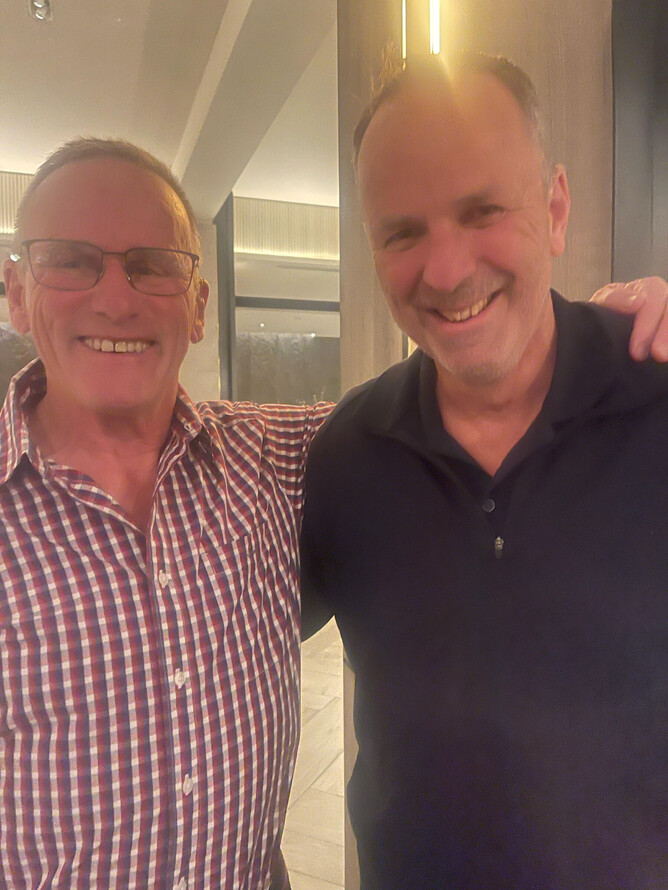 Here are the two Bills. Bill Bishop used to be Blossom Lady’s vet and we know him from that time (the 1990's) though not well. Bill's Dad and Mum knew Bill well and spent some time together. This next photo of the two Bills together. (This photo is for Bill's Mum Judy).