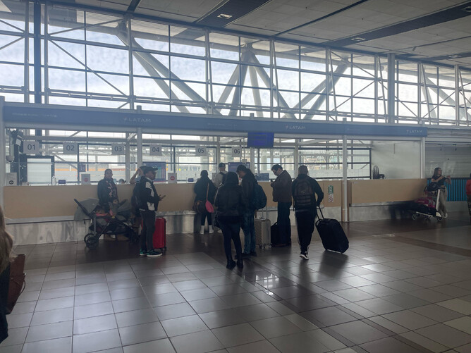Then we got told Chile was closing its borders too, the next day. So we queued to get on standby for a flight from there to Auckland at midnight that night. The queue was in the place below, exactly in the pic, but with about 200 more people. You got a ticket and had to wait to be called to a booth. We got a ticket and the wait looked to be about 3 hours away given the way the queue was moving. We were maybe 75th in line. There was an air of anxiousness. I spotted an English woman and found out she was on her own and scared. I also noticed her ticket was number 40. After getting to know one another I asked cheekily if we could come in on her ticket. She generously replied 'Yes'. That cut our queueing time by one and a half hours at least. It also may have assisted us in getting on the plane at all! This was a flight direct to NZ.