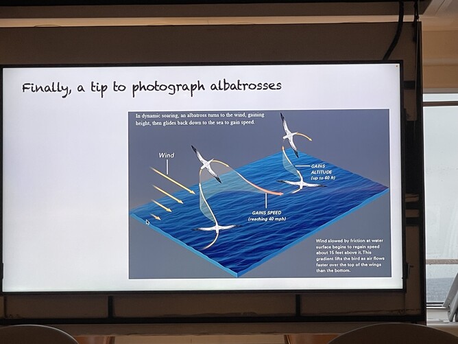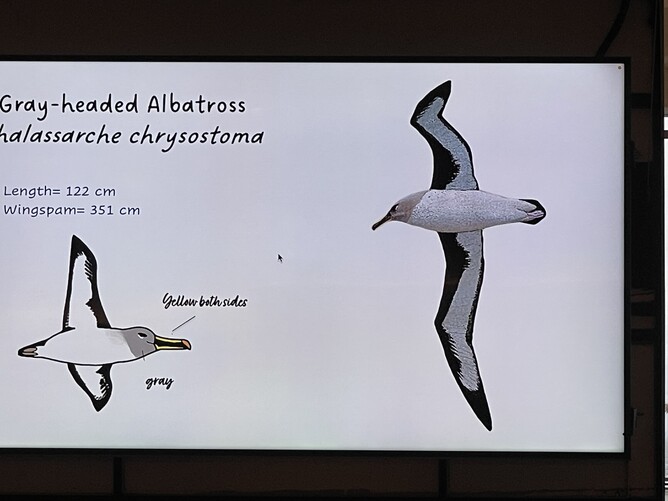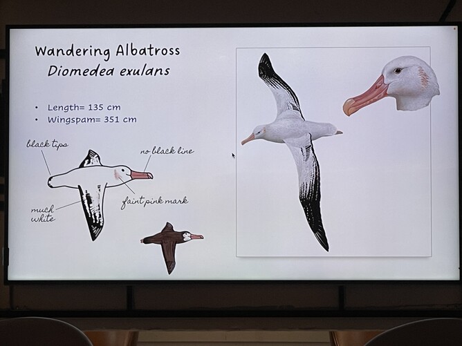 Marcel introduces us to albatrosses and petrels with easy-to-follow slides. I have included the ones we are most likely to see. I learn more and cement what I already know (which has been forgotten).