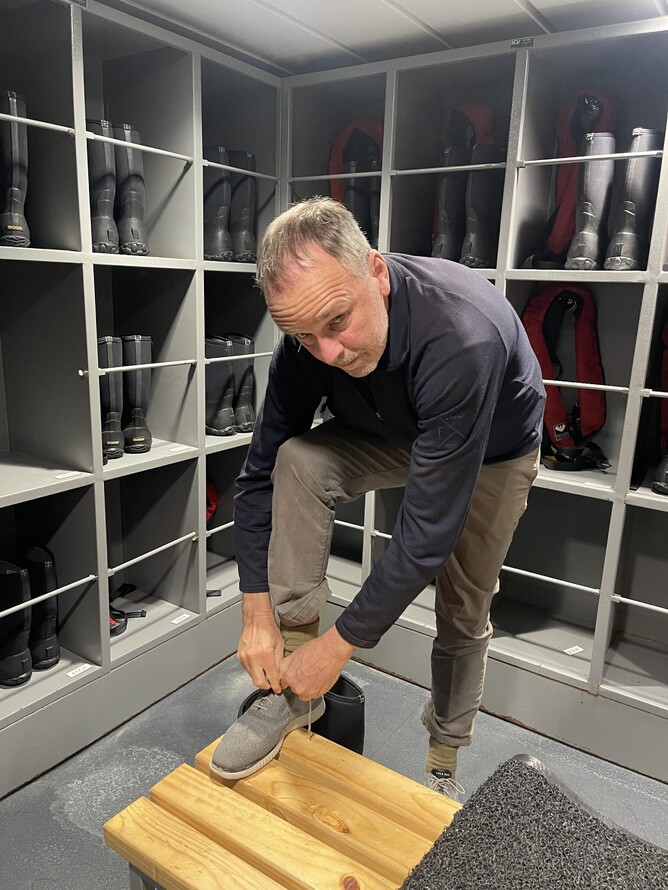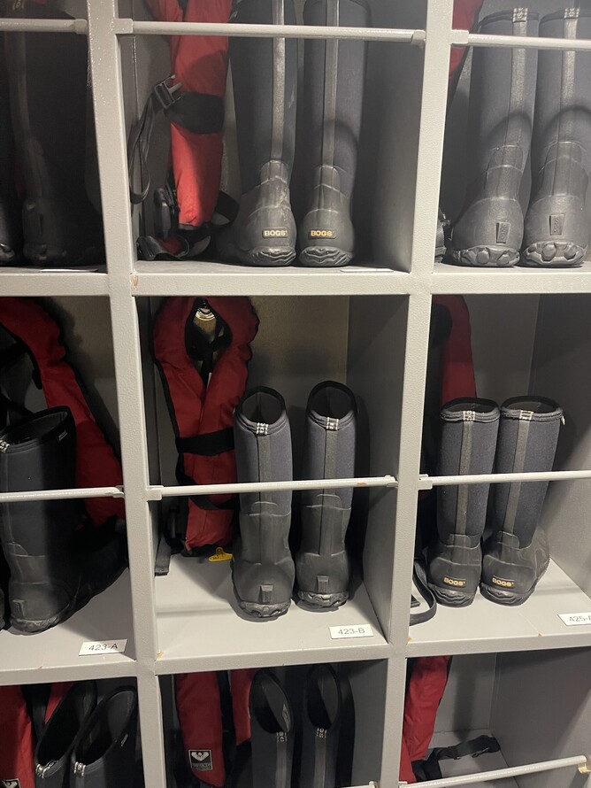 Here is the cleaning part of the mudroom. The talk is all about life jackets, boots, and cleaning your boots.