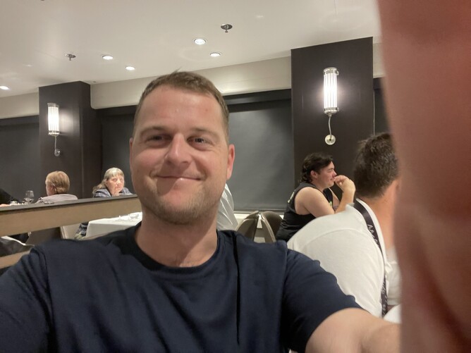So I asked Lawrence at the next door table to take the photo. He quickly takes one of himself before he takes us (I find out later).