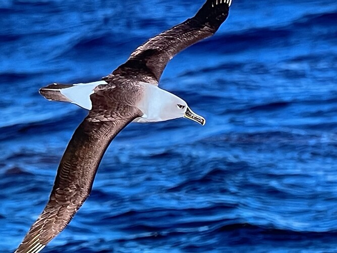I see a black-browed albatross. It is too fast for me to photograph and too far away. Maybe Charlie or John might give me a really close-up photo of one if I ask them.