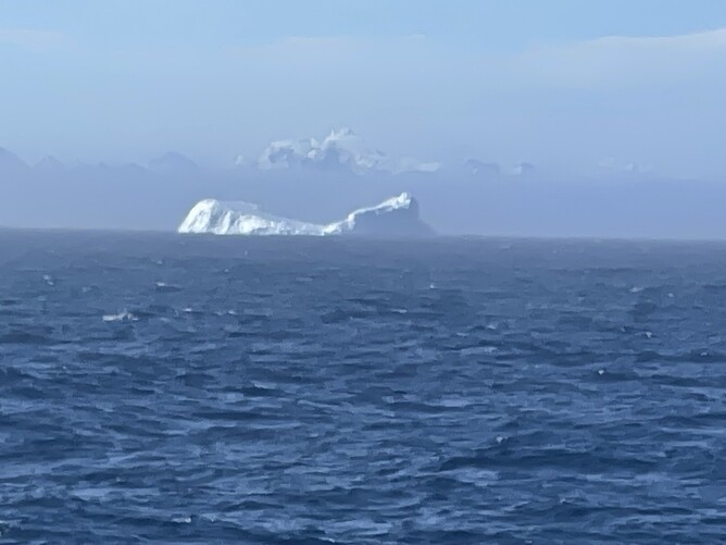 We are closer to making our first landing. But before that, Tennessee, the historian, is talking. Just as he starts his talk, he spots an iceberg - the first we have seen. The talk stops!