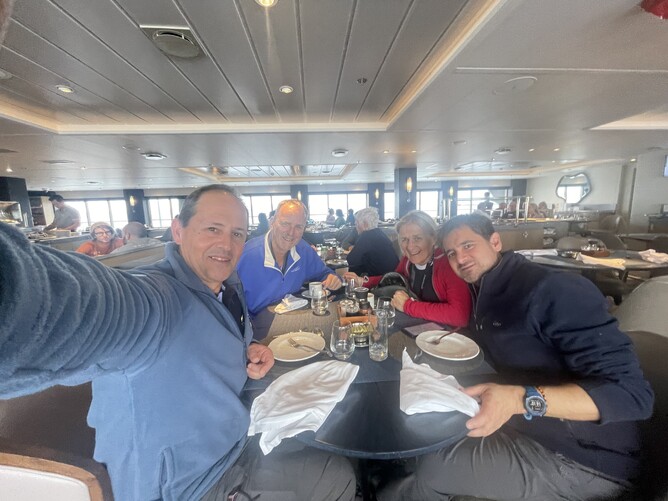 We have dinner with German (pronounced Herman, from Argentina) and Rodrigos from Chile. German lives in Bariloche, and Rodrigos in Santigao. But both are very experienced in Antarctic trips and spend 6-8mths of their year on trips. They are both really interesting. German takes the photo.