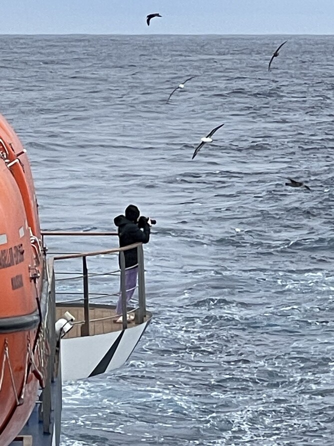 We have 2 1/2 days on the boat before we will see the penguins. There will be talks and we will all get to know one another. I love the vibe. Lots in common and the same sense of humour. Out on the deck with Rob and Jean, Bill and I look for seabirds and feel the cold fresh air. It is refreshing.