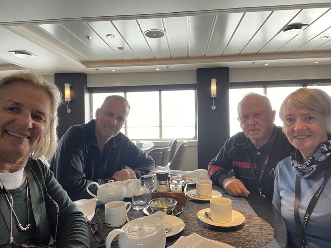Then we head for dinner. First dinner we sit with Helen Clarke and Peter Davis. Darn, I forgot to get a photo. There is one later in the blog. We talked about Helen's 101-year-old Dad. He sounds like a character and she is the chief organiser of looking after him with 3 other sisters. We discussed how Helen and Bill were the chief trip organisers. Peter and I agreed that what we had in common was that we brought a fun element to the trip.