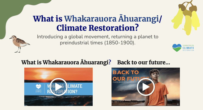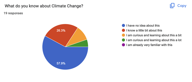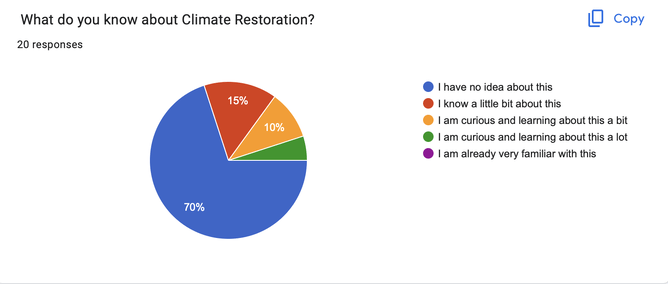 . . . students were asked to complete a survey, so that when we started Climate Restoration they would "hit the ground running". When they complete the survey at the end of the two days, we can see what they have learnt. What was most interesting was how much they had learned about climate change and climate restoration and crisis. We also asked questions about their carbon emissions.
