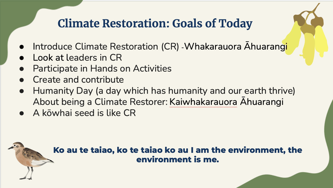 Young people's ideas for 'I am Humanity' / Climate Restoration Day on 26th October.