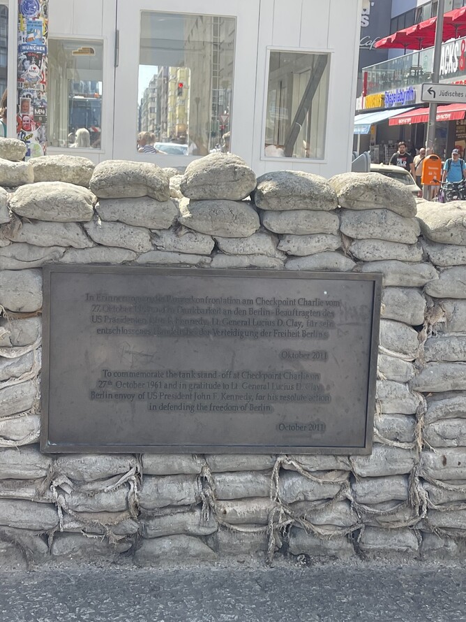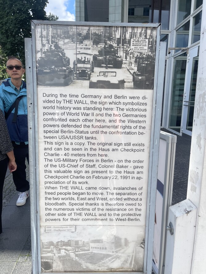 Checkpoint Charlie was one place we visited on the bike tour where we learnt about the wall.