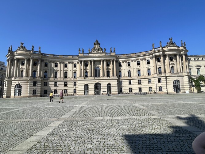 Bebelplatz: From Wikipedia: "The Bebelplatz (formerly and colloquially the Opernplatz) is a public square in the central Mitte district of Berlin, the capital of Germany. The square, then called Platz am Opernhaus (i.e. square at the opera house), was laid out between 1741 and 1743 under the rule of King Frederick II of Prussia. Frederick "the Great".