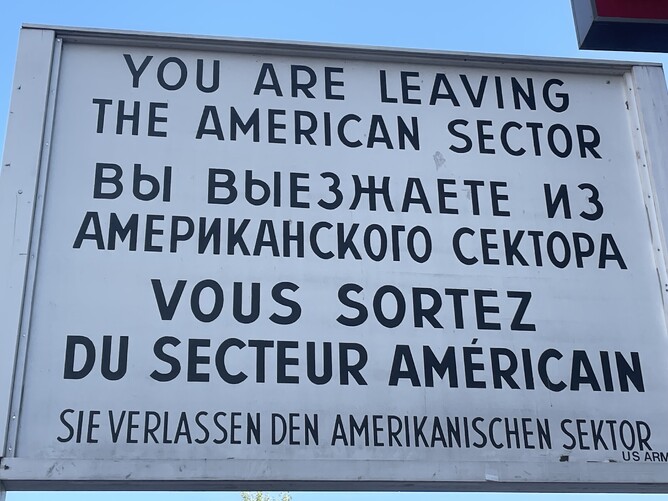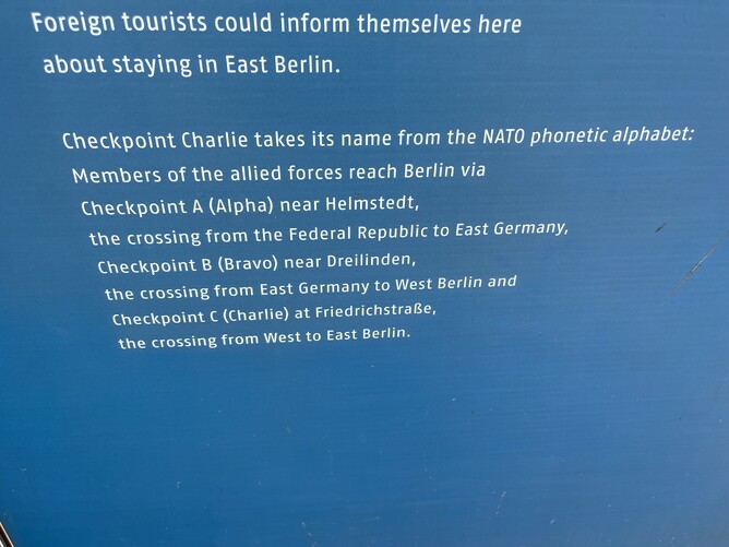 From Wikipedia: "The former military checkpoint was controlled by the Americans. Only foreigners, employees of the Permanent Mission of the Federal Republic of Germany in the GDR, and GDR officials were allowed to cross the border here.