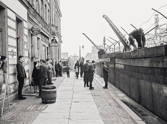 Over the next few days and weeks, the coils of barbed wire strung along the border to West Berlin were replaced by a wall of concrete slabs and hollow blocks. This was built by East Berlin construction workers under the close scrutiny of GDR border guards. Houses on, for instance, Bernauer Strasse, where the sidewalks belonged to the Wedding borough (West Berlin) and the southern row of houses to Mitte (East Berlin), were quickly integrated into the border fortifications: the GDR government had the front entrances and ground floor windows bricked up. Residents could get to their apartments only via the courtyard, which was in East Berlin. Many people were evicted from their homes already in 1961 – not only in Bernauer Strasse, but also in other border areas.