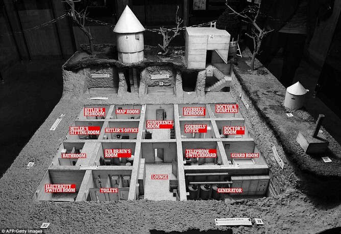 Originally intended as an air-raid shelter, the Führerbunker underground complex was expanded to provide permanent protection for Hitler and other members of the Nazi leadership (Joseph Goebbels and his family would move into the bunker in April of 1945). The finalized Führerbunker was a multistory structure nearly 30 feet below ground and protected by 13 feet of concrete."