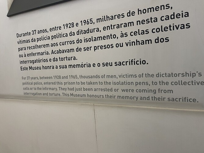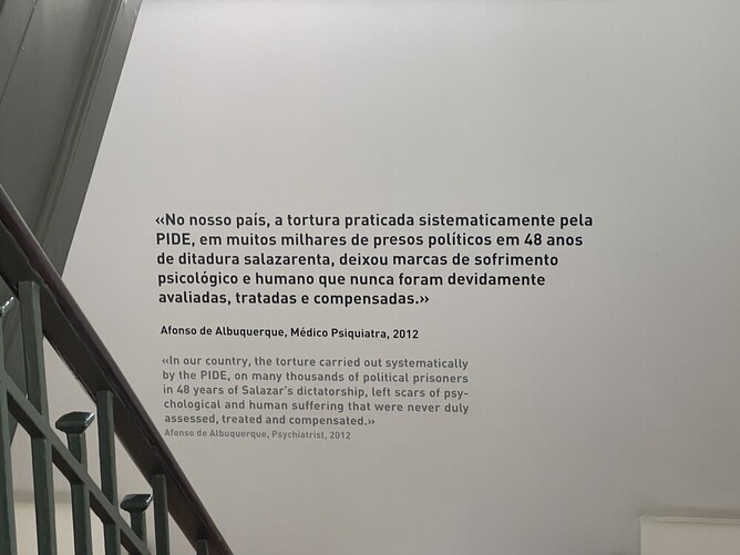 After the bike ride we went to Aljube Museum. Everything is explained in Portuguese and English. It is a former prison. It was originally an ecclesiastical prison, later converted into an Archbishop's palace in the 1500's. It survived the 1755 earthquake, and was once again turned into a prison, this time for women. Then starting in 1928, it was where political prisoners were interrogated and tortured by the political police, lasting until 1965.