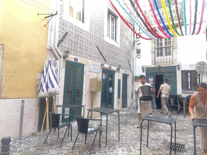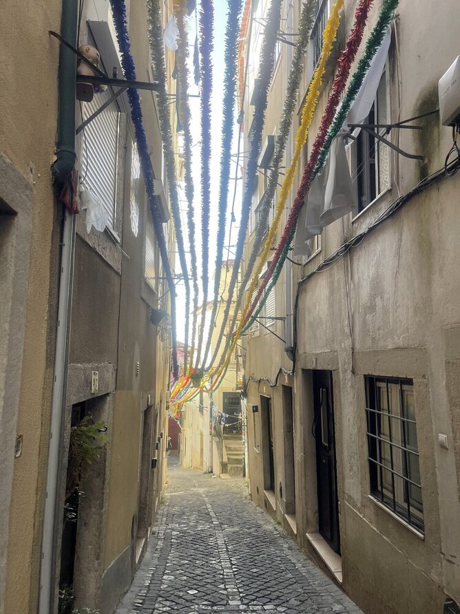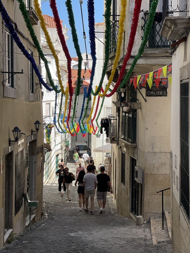 "The decorations, including colourful streamers, paper lanterns, and garlands, transform the streets, especially in the Alfama district, (where we are staying) into a vibrant and festive environment. The street parties called "arraiais," are where people enjoy live music, traditional food (like grilled sardines), and a lively atmosphere.